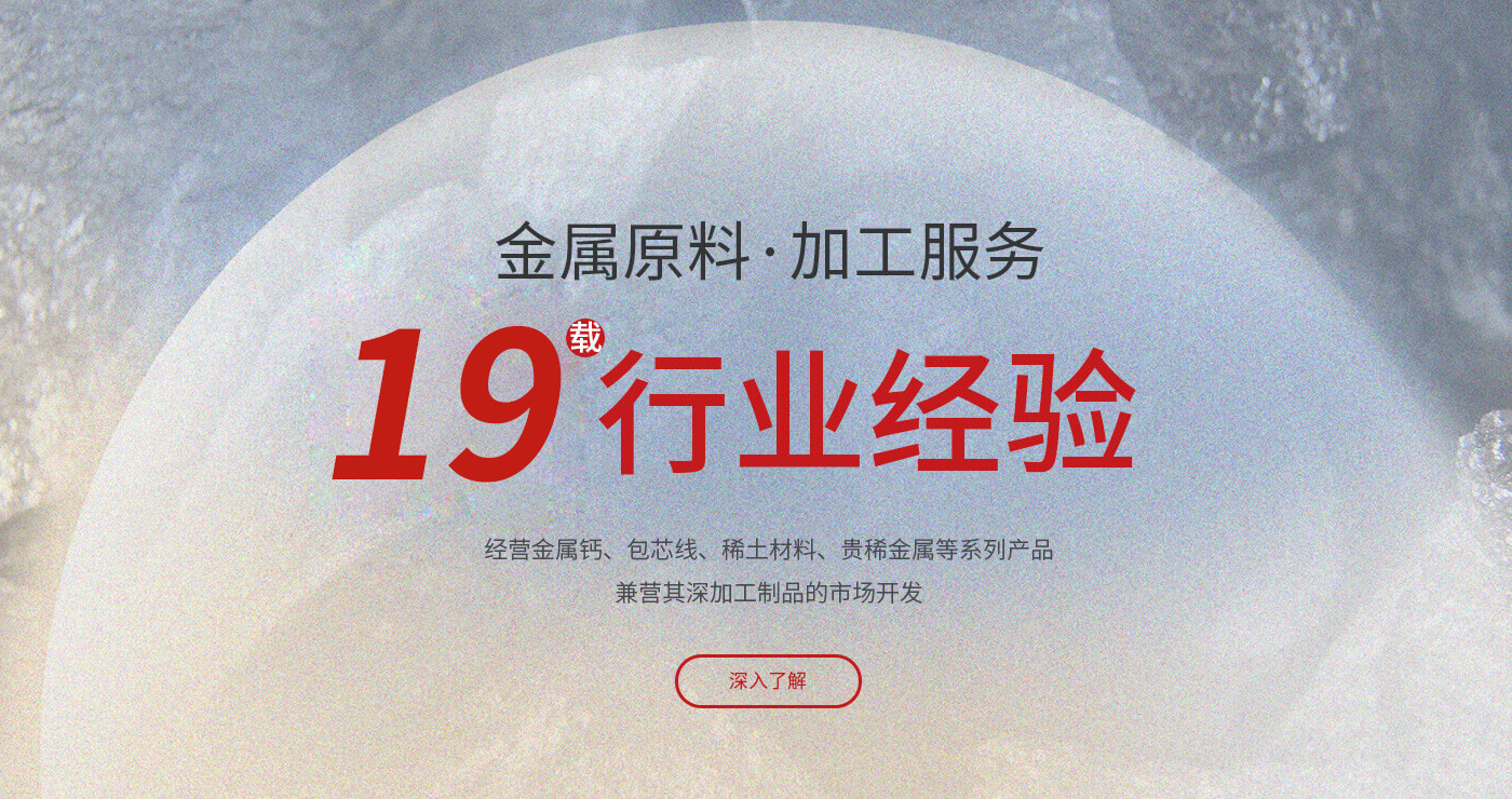 • 產(chǎn)品品類多樣 ,規(guī)格多樣,可根據(jù)客戶需求定制主要生產(chǎn)并經(jīng)營金屬鈣、包芯線、稀土材料 、貴金屬等